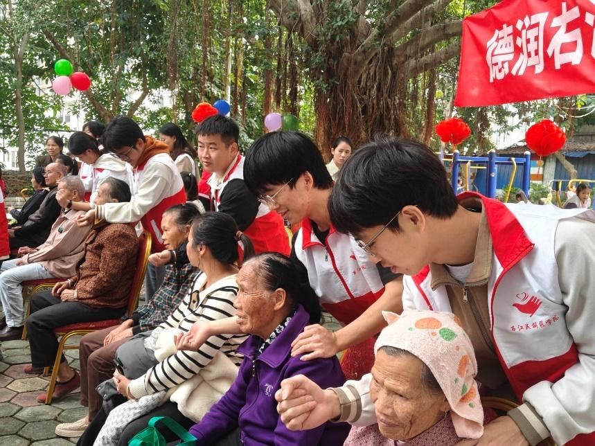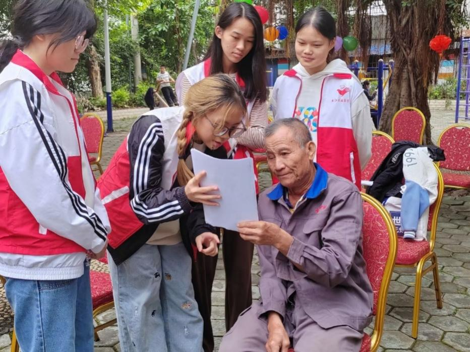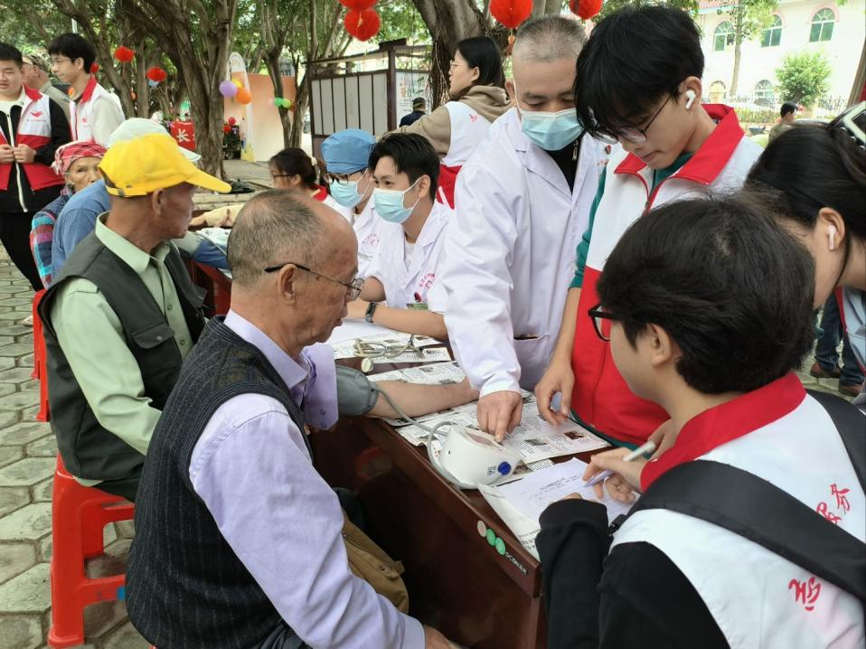 金秋送爽,又逢重阳。2024年重阳节前夕,习近平总书记给人民行动老年志愿者代表回信,亲切勉励广大老年朋友在安享晚年的同时积极老有所为,为推进中国式现代化贡献“银发力量”,并向全国老年人致以诚挚问候。为深入践行总书记嘱托,传承重阳节“敬老、爱老、孝老”的千年文化内涵,2025年10月25日上午,基础医学院党委联合四塘镇人民政府,在侨吉社区同心广场共同举办了以“重阳德孝情,学子暖民心”为主题的文明实践活动。本次活动由基础医学院党委策划,解剖组织形态党支部书记白志坤担任指导,基础医学院学生科欧美景老师带队,各班级学生志愿者组成实践团队,致力于将传统节日氛围与民生服务、文化传承有机结合,为镇内老人送去温暖与关怀。