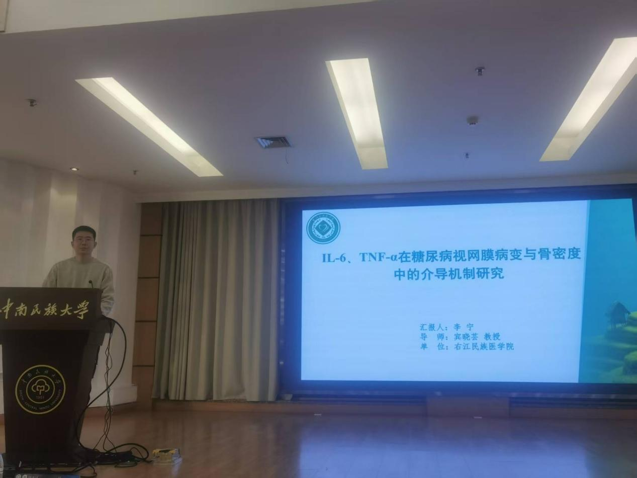 年会上,宾晓芸教授以《广西壮族人群遗传结构、骨质健康特征及骨质疏松症相关基因多态性研究》为题作报告。该研究基于广西壮族独特的遗传背景与生态环境,通过多维度数据分析,揭示了壮族人群骨质健康特征的遗传基础及骨质疏松症的易感基因标记,为民族地区骨代谢疾病的精准防治提供了重要人类学依据,获得现场学者的关注与肯定。李宁同学则聚焦慢性病交叉领域,以《IL-6、TNF在糖尿病视网膜病变与骨密度中的介导机制研究》为题,深入分析了IL-6、TNF在代谢性疾病并发症与骨健康关联中的调控作用,为探索多系统疾病共病机制提供了新思路,其报告展现了青年学者对医学人类学微观机制研究的积极探索。