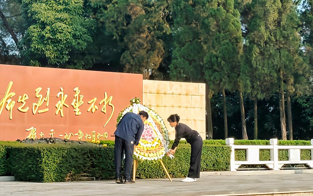 基础医学院党委书记宾晓芸、院长黄忠仕向革命烈士敬献花圈