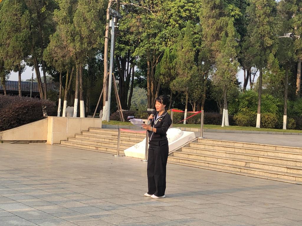 敬献仪式结束后,基础医学院党委书记宾晓芸结合先烈事迹,开展微党课宣讲。她从缅怀先烈的初心出发,将党性铸魂与医者担当相融合,深刻阐释了新时代医学生应有的使命与追求,激励在场师生把红色精神转化为奋进动力。