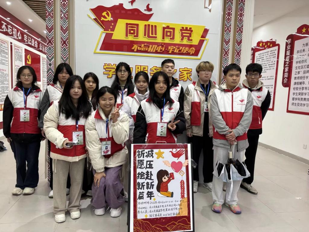 为弘扬中华优秀传统文化,丰富校园文化生活,有效缓解同学们期末备考压力,深化党建引领与志愿服务深度融合,2026年1月4日,基础医学院第一学生党支部携手学院青年志愿者协会,于校园同心社区F103室开展“新年祈愿,轻装前行”主题活动。2024级、2025级共50名学生代表齐聚一堂,在欢声笑语中迎接新春的到来。
