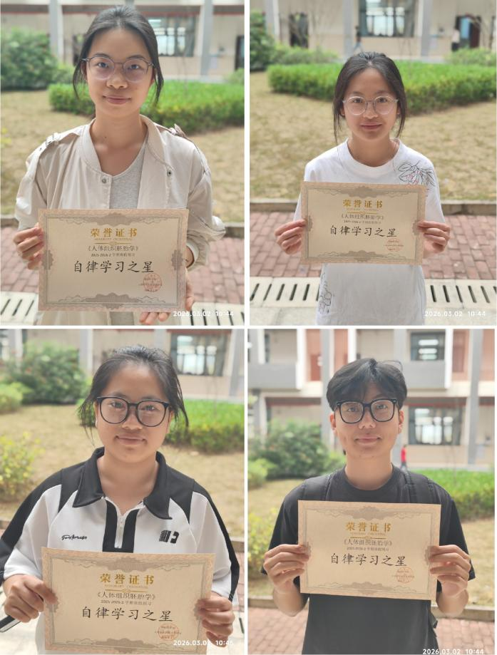 为夯实医学基础、培养学生自主学习能力,助力2025级医学生更好衔接新学期专业学习,破解人体组织胚胎学“知识点繁杂、结构抽象、难以系统梳理”的学习难点,寒假期间,人体组织胚胎学教学团队,面向临床医学、医学影像学、口腔医学等5个本科专业学生,创新融入知识图谱与AI辅助教学手段,持续组织开展《人体组织胚胎学》线上预习活动,并于3月2日开学第一天为表现突出的学生颁发“自律学习之星”荣誉奖状,以榜样引领学风建设,以科技赋能医学人才培养。
