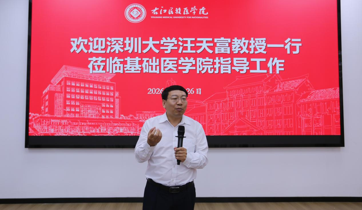 为助力我校基础医学院生物医学工程专业高质量起步,进一步明确专业建设方向、破解初创阶段发展瓶颈,3月26日下午,深圳大学汪天富教授一行莅临基础医学院,就生物医学工程专业建设开展全方位、深层次的专题指导。王俊利副校长、教务处漆光紫处长出席活动,基础医学院领导班子成员、生物医学工程专业教研室和物理学教研室全体教师、生物医学工程专业学生参与专题讲座及座谈交流,共话专业发展、共谋建设蓝图。