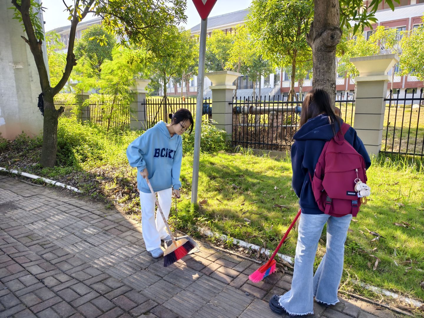 活动中,同学们以班级为单位进行行动,手持工具,分工协作、精细作业,全面清理社区道路、绿化带及卫生死角的垃圾杂物。同学们不怕脏、不畏累,用实干改善社区环境,用汗水换来社区环境的洁净有序。