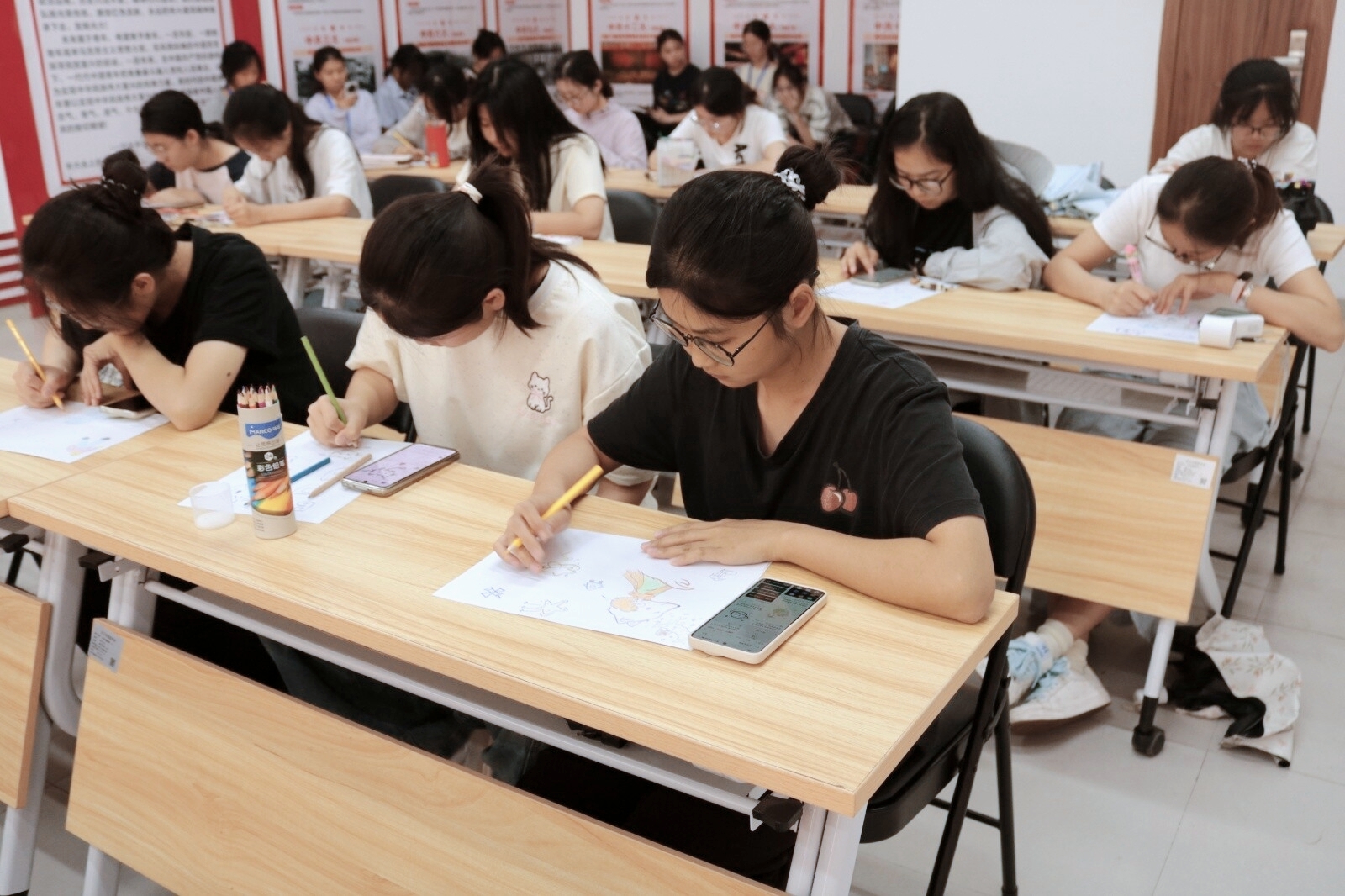 活动伊始,主持人详细介绍活动背景、主题与流程,着重强调“绘画无需技巧,重在情绪表达”,打消同学们对“画得好不好”的创作顾虑。现场围绕情绪与绘画的关联开展科普讲解,引导大家放下心理防备,以轻松开放的状态投入创作,让笔尖成为传递心声的载体。