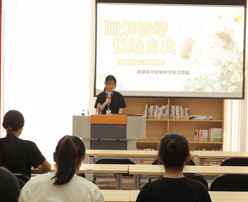 为舒缓学生心理压力,引导大家科学调节情绪、接纳自我,同时以美育浸润心灵,助力学生全面健康成长,筑牢积极健康的心理防线,右江民族医学院基础医学院易班学生工作站于2026年4月15日在同心社区F103成功举办“‘画’解情绪,悦纳自我”绘画疗愈心理健康活动。本次活动面向2024级、2025级学生开展,30名学生代表参会。
